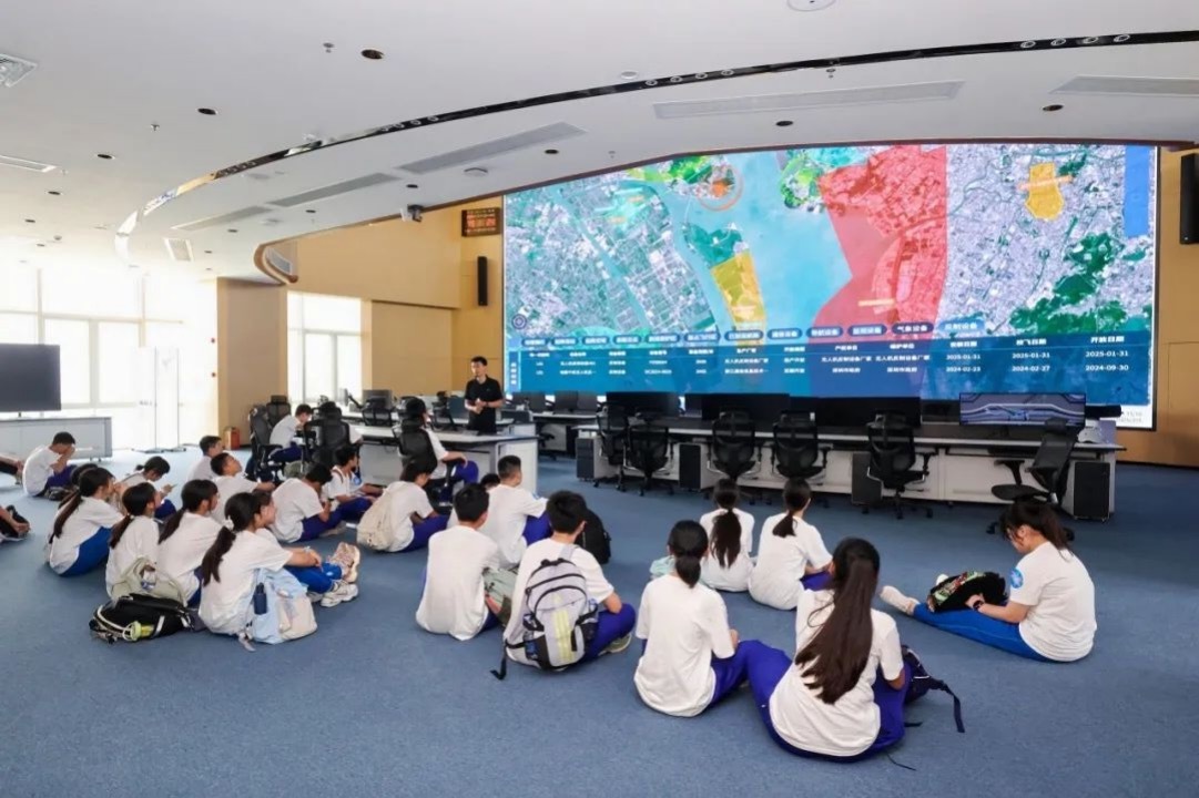 接着走进广天院展厅,了解空天飞行器的研发史和奋斗史,近距离观赏先进的空天飞行器,学习空天科技相关知识。在飞演指控中心,同学们进一步学习了飞行器导航、通信、监控等综合服务系统如何保障低空飞行器安全高效运行,了解低空经济应用场景。